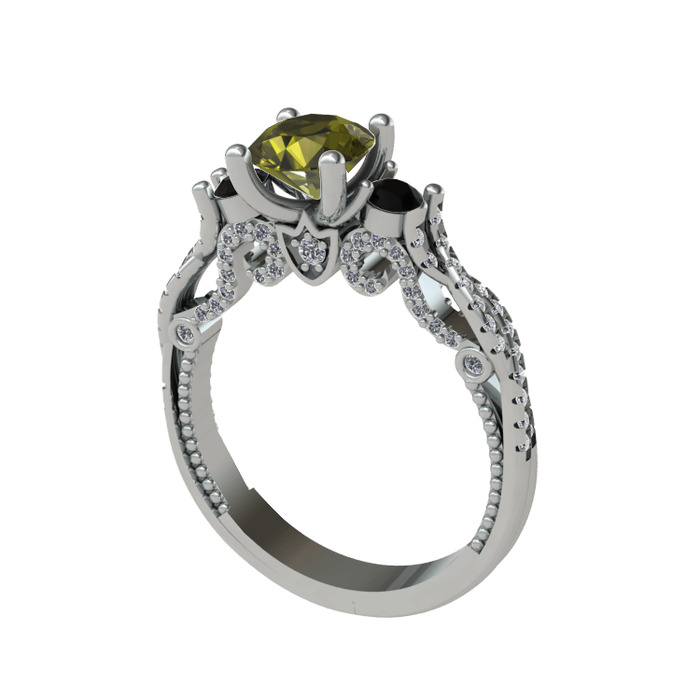 Peridot, siyah zirkon ve swarovski 18 ayar beyaz altın yüzük