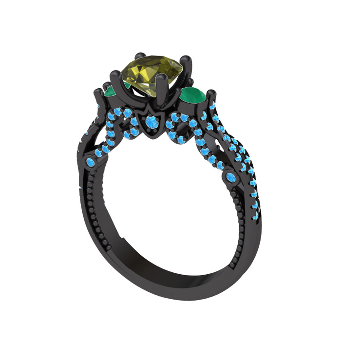 Peridot, yeşil kuvars ve akuamarin 925 ayar siyah rodyum kaplama gümüş yüzük