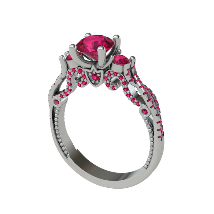 Rodolit garnet 18 ayar beyaz altın yüzük