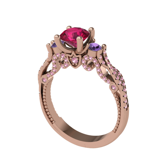 Rodolit garnet, ametist ve pembe kuvars 18 ayar rose altın yüzük