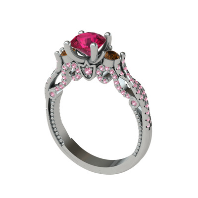 Rodolit garnet, dumanlı kuvars ve pembe kuvars 18 ayar beyaz altın yüzük