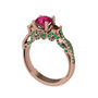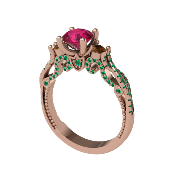 Rodolit garnet, dumanlı kuvars ve yeşil kuvars 14 ayar rose altın yüzük