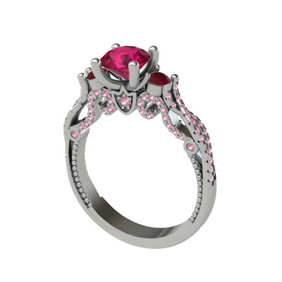 Rodolit garnet, kök yakut ve pembe kuvars 18 ayar beyaz altın yüzük