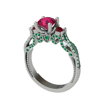 Rodolit garnet, kök yakut ve yeşil kuvars 18 ayar beyaz altın yüzük