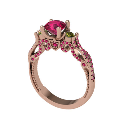 Rodolit garnet ve peridot 8 ayar rose altın yüzük