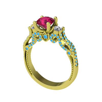 Rodolit garnet, swarovski ve akuamarin 14 ayar altın yüzük