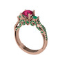 Rodolit garnet ve yeşil kuvars 925 ayar rose altın kaplama gümüş yüzük