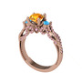 Sitrin, akuamarin ve pembe kuvars 14 ayar rose altın yüzük