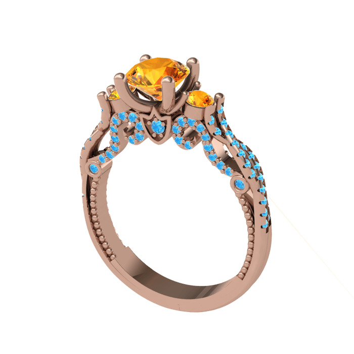 Sitrin ve akuamarin 925 ayar rose altın kaplama gümüş yüzük