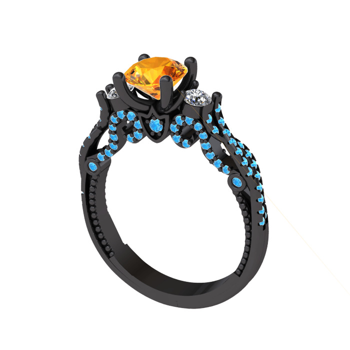 Sitrin, beyaz zirkon ve akuamarin 925 ayar siyah rodyum kaplama gümüş yüzük