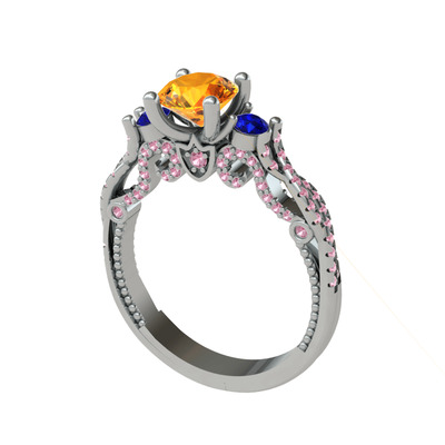 Sitrin, lab safir ve pembe kuvars 18 ayar beyaz altın yüzük