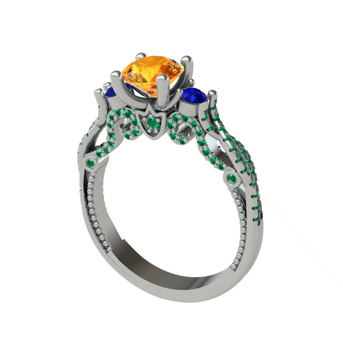 Sitrin, lab safir ve yeşil kuvars 14 ayar beyaz altın yüzük
