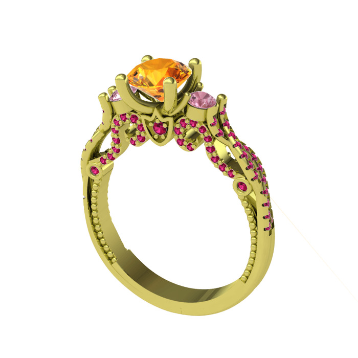 Sitrin, pembe kuvars ve rodolit garnet 18 ayar altın yüzük