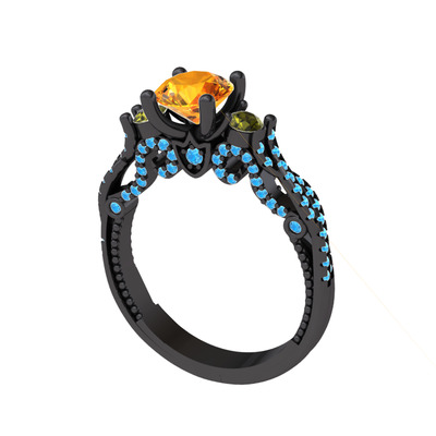 Sitrin, peridot ve akuamarin 925 ayar siyah rodyum kaplama gümüş yüzük