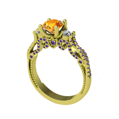 Sitrin, pırlanta ve ametist 18 ayar altın yüzük (0.22 karat)