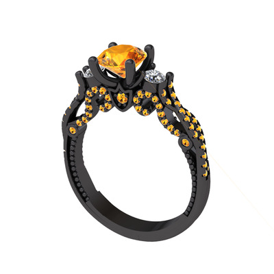 Sitrin ve pırlanta 925 ayar siyah rodyum kaplama gümüş yüzük (0.22 karat)