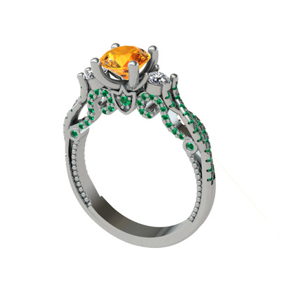 Sitrin, pırlanta ve yeşil kuvars 18 ayar beyaz altın yüzük (0.22 karat)