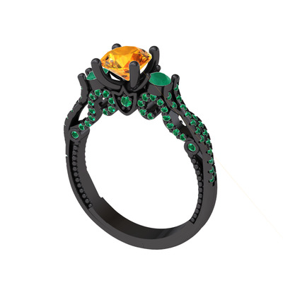 Sitrin ve yeşil kuvars 925 ayar siyah rodyum kaplama gümüş yüzük