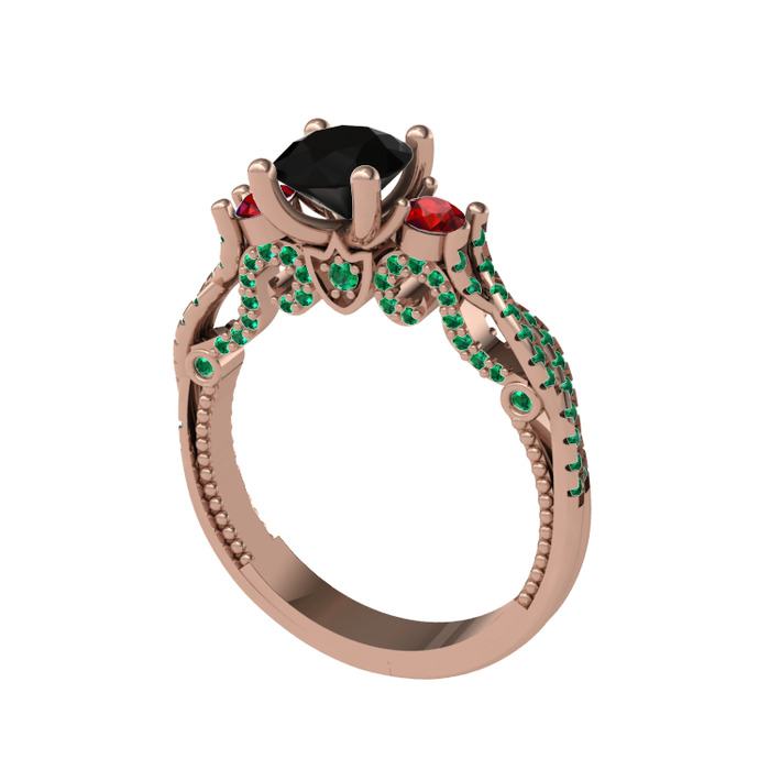 Siyah zirkon, garnet ve yeşil kuvars 8 ayar rose altın yüzük