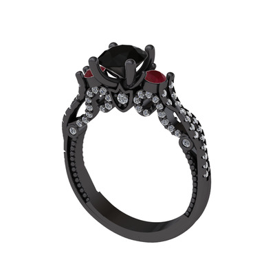 Siyah zirkon, kök yakut ve swarovski 925 ayar siyah rodyum kaplama gümüş yüzük