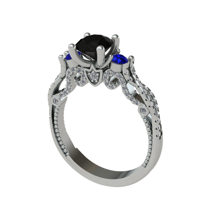 Siyah zirkon, lab safir ve swarovski 8 ayar beyaz altın yüzük