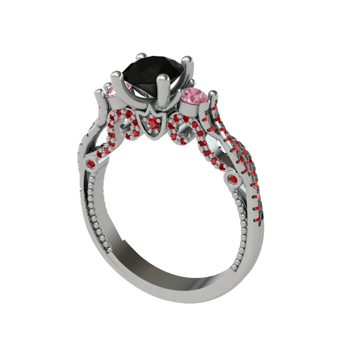 Siyah zirkon, pembe kuvars ve garnet 14 ayar beyaz altın yüzük