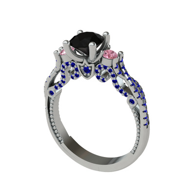 Siyah zirkon, pembe kuvars ve lab safir 925 ayar gümüş yüzük