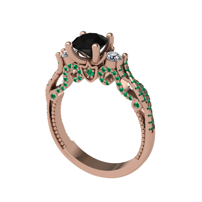 Siyah zirkon, pırlanta ve yeşil kuvars 18 ayar rose altın yüzük (0.22 karat)
