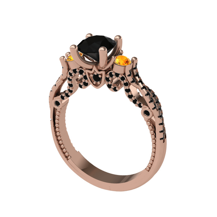 Siyah zirkon ve sitrin 8 ayar rose altın yüzük