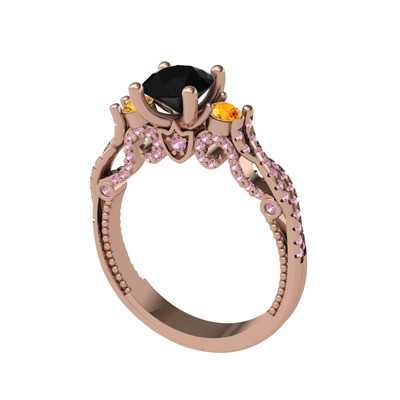 Siyah zirkon, sitrin ve pembe kuvars 18 ayar rose altın yüzük