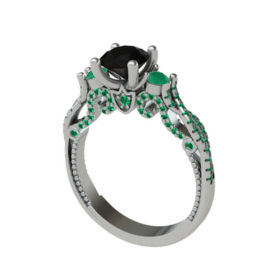 Siyah zirkon ve yeşil kuvars 18 ayar beyaz altın yüzük