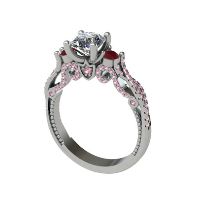 Swarovski, kök yakut ve pembe kuvars 18 ayar beyaz altın yüzük