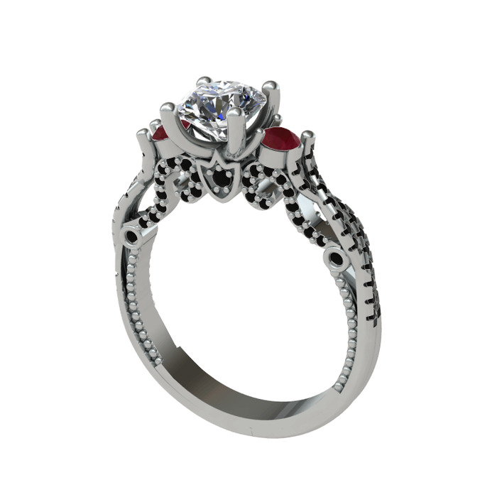 Swarovski, kök yakut ve siyah zirkon 925 ayar gümüş yüzük