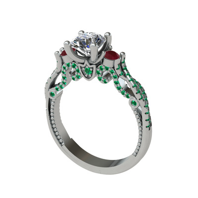 Swarovski, kök yakut ve yeşil kuvars 18 ayar beyaz altın yüzük