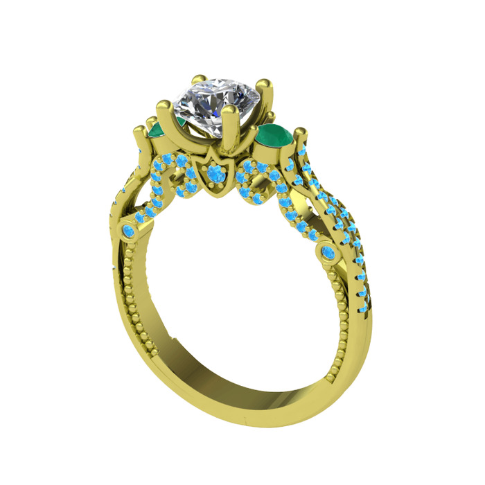 Swarovski, kök zümrüt ve akuamarin 925 ayar altın kaplama gümüş yüzük