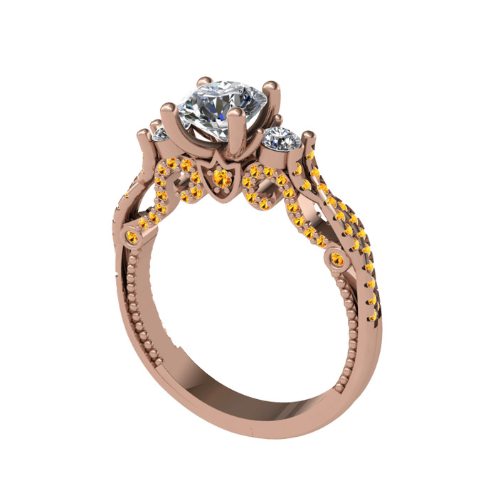 Swarovski, pırlanta ve sitrin 14 ayar rose altın yüzük (0.22 karat)