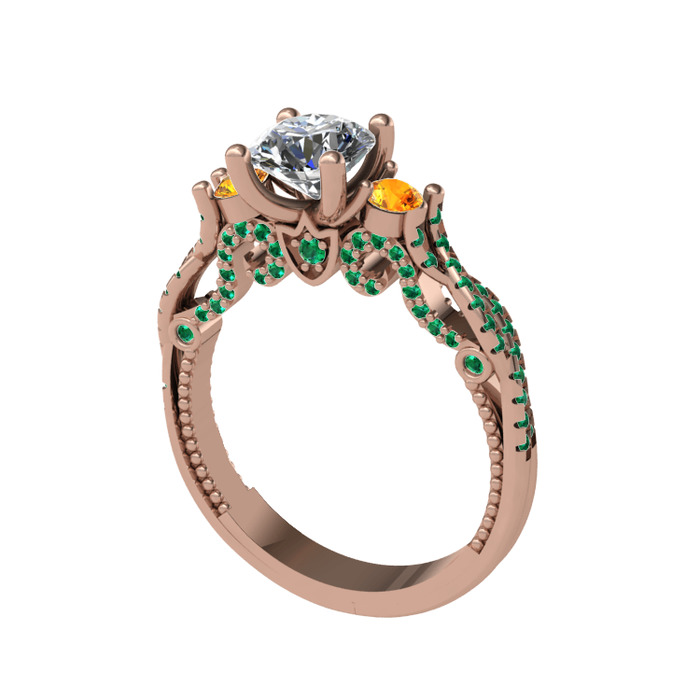 Swarovski, sitrin ve yeşil kuvars 925 ayar rose altın kaplama gümüş yüzük