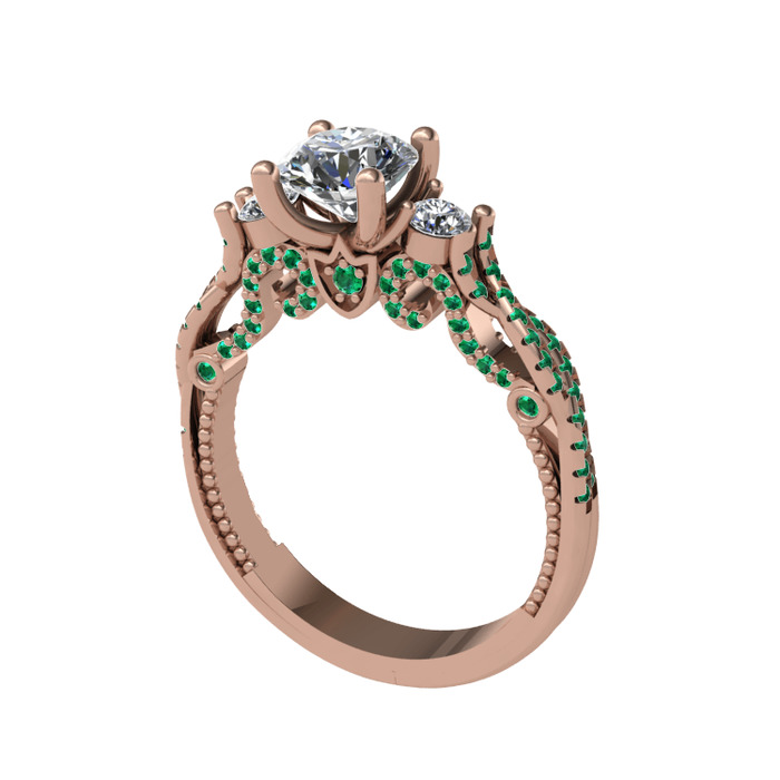 Swarovski ve yeşil kuvars 14 ayar rose altın yüzük