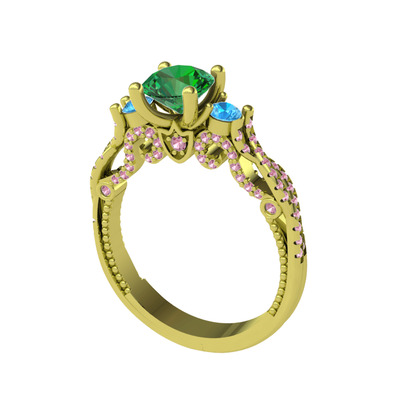 Yeşil kuvars, akuamarin ve pembe kuvars 8 ayar altın yüzük