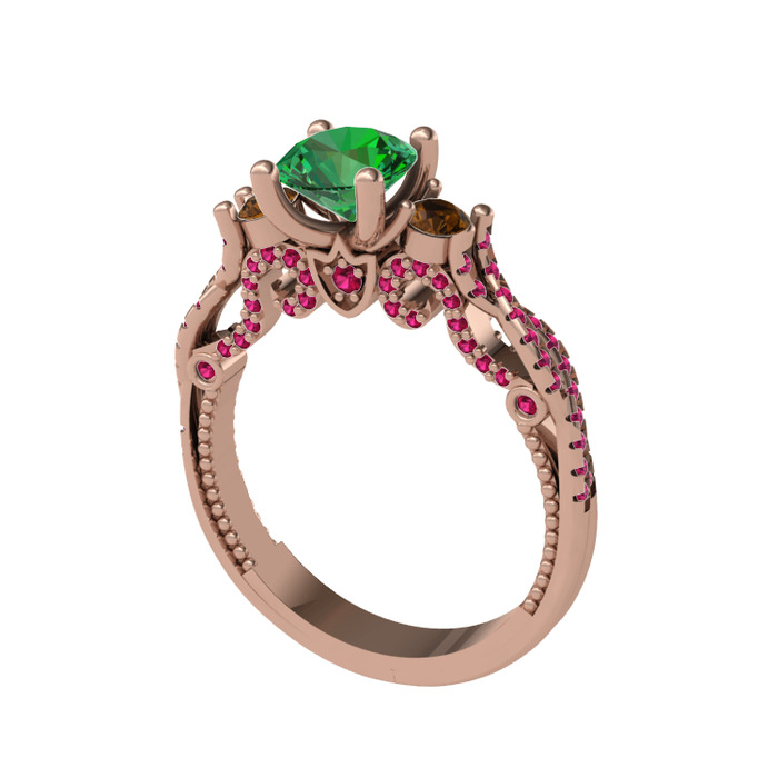 Yeşil kuvars, dumanlı kuvars ve rodolit garnet 18 ayar rose altın yüzük