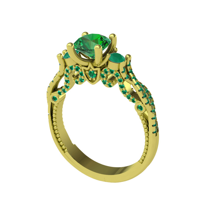 Yeşil kuvars ve kök zümrüt 18 ayar altın yüzük