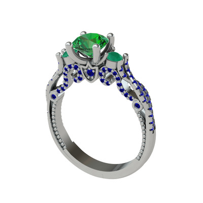 Yeşil kuvars, kök zümrüt ve lab safir 18 ayar beyaz altın yüzük