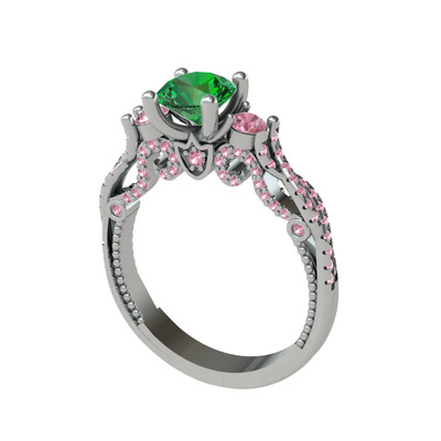 Yeşil kuvars ve pembe kuvars 18 ayar beyaz altın yüzük