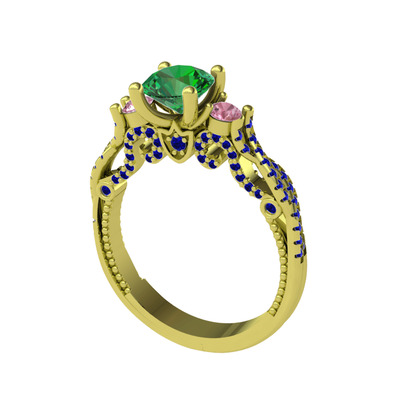 Yeşil kuvars, pembe kuvars ve lab safir 18 ayar altın yüzük