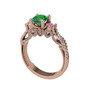 Yeşil kuvars, pembe kuvars ve pırlanta 925 ayar rose altın kaplama gümüş yüzük (0.792 karat)