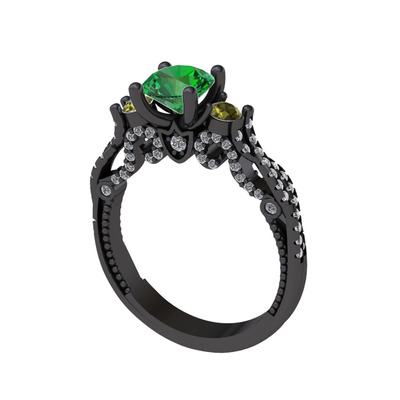 Yeşil kuvars, peridot ve swarovski 925 ayar siyah rodyum kaplama gümüş yüzük