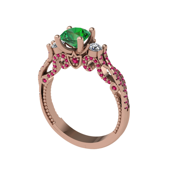Yeşil kuvars, pırlanta ve rodolit garnet 18 ayar rose altın yüzük (0.22 karat)