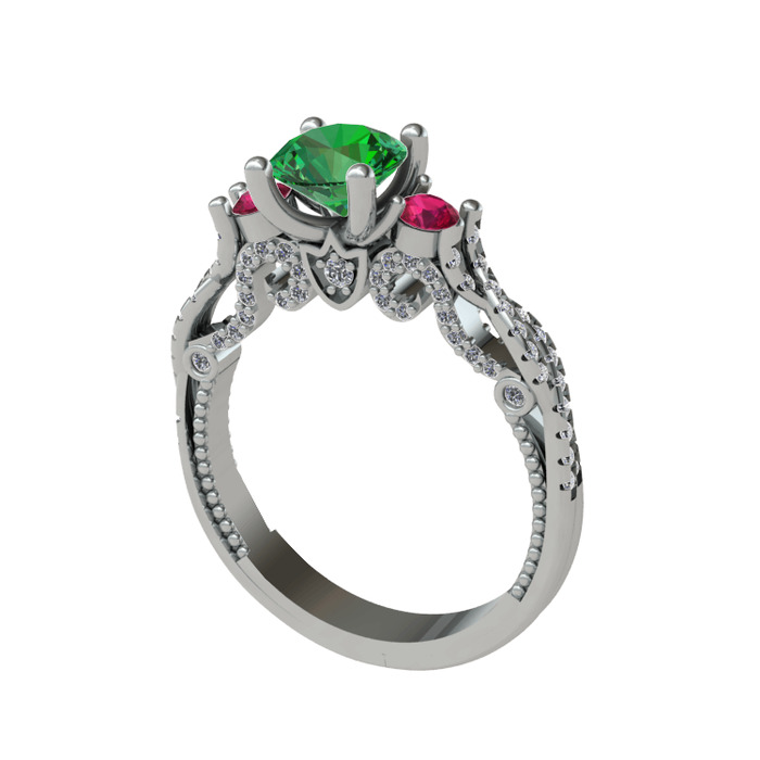 Yeşil kuvars, rodolit garnet ve pırlanta 18 ayar beyaz altın yüzük (0.792 karat)