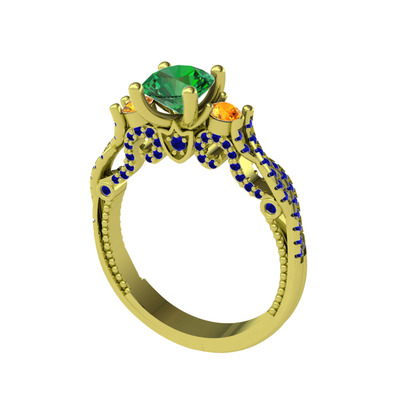 Yeşil kuvars, sitrin ve lab safir 925 ayar altın kaplama gümüş yüzük