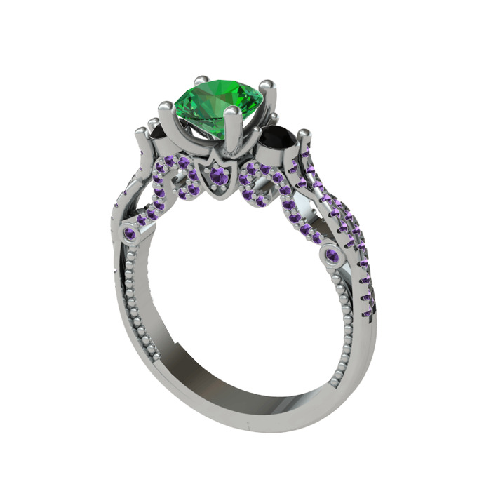 Yeşil kuvars, siyah zirkon ve ametist 925 ayar gümüş yüzük